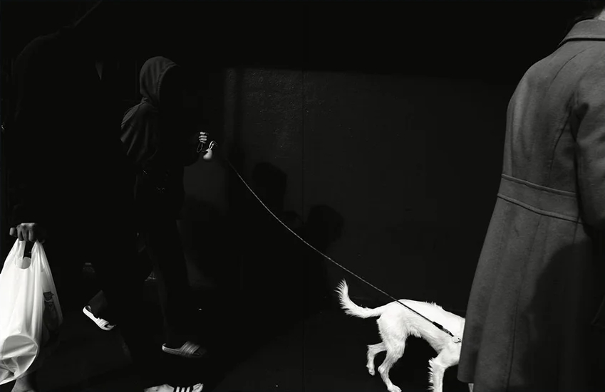 With that nod to Frank, I am also reminded of Matt Black’s American Geography, Bryan Schutmaat’s Sons of the Living, and maybe, if not the same geography, Trent Parke’s monumental, Monument, and of course, where would we be without the training ground of O. Winston Link and Mike Brody, whose fascination with the rails have both been widely documented. What sets Leblanc apart from those that I have mentioned is this chloroformed feeling of nausea presented in the work, perhaps if not nausea, anxiety is the lighter secondary term of expressive feeling I get. Everything is cloaked in shadow, and when I find people, animals, or vistas within the work, they all feel horrific. And on that very topic, the signal to Ghostface, from Wes Craven’s Scream, is a character that looms large over the book, suggesting, in its usage, that what we are dealing with here is a horror movie within a horror movie, where we can speak about the mechanics of decay and the unfolding of empire from inside of it. It is not a casual reference that Ghostface ends up here.