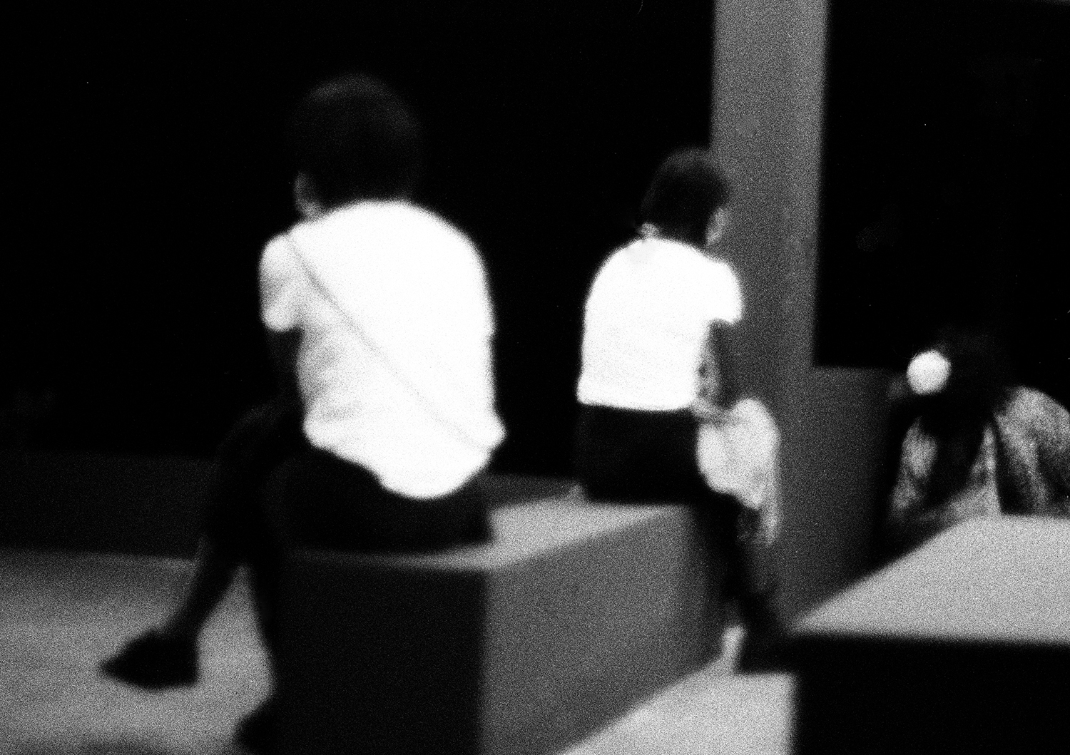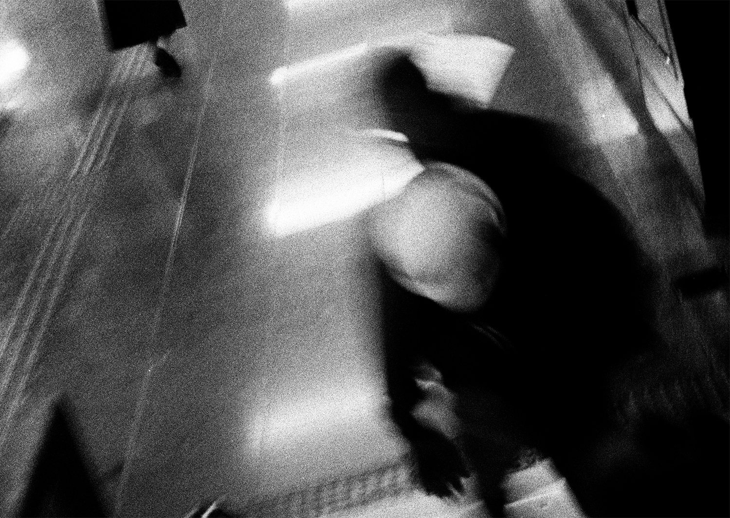 There has been a myriad of books written on punk rock and subculture over the past forty years, many of which take a historical perspective. Whereas those are fine, I am thinking of more contemporary books where these discussions might fit, like Jim Jacoy’s book, or, from a different perspective, the work of Mike Brodie, whose crust-punk kids ride the rails while slipping through the system, as suitable equivalents for Andre’s work. That said, I also believe that his grainy, shaky black-and-white photographs recall the Provoke era of Japanese photography, with its syrupy dissolution used to invoke anxiety and frustration. The blurry image of two people in white shirts sitting on a bench looks straight out of Moriyama’s Hunter, as does the image of a blurred figure exiting an escalator, perhaps slightly more Tomatsu from Oh Shinjuku. are-bure-boke.
